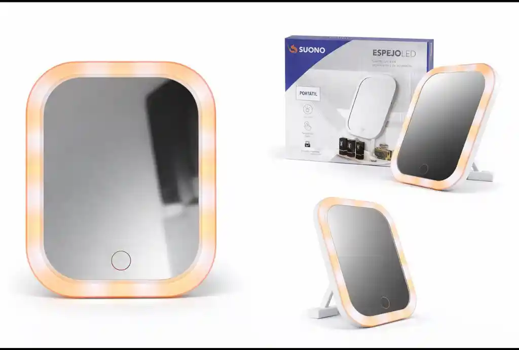 Luz LED blanca con botón táctil. Led makeup mirror ideal para maquillaje y cuidado facial. Diseño portátil, ligero y elegante. Base estable para colocarlo en mesas o tocadores. Ideal para uso diario o para llevar de viaje. Dale un toque profesional a tu rutina de belleza con este espejo funcional y moderno