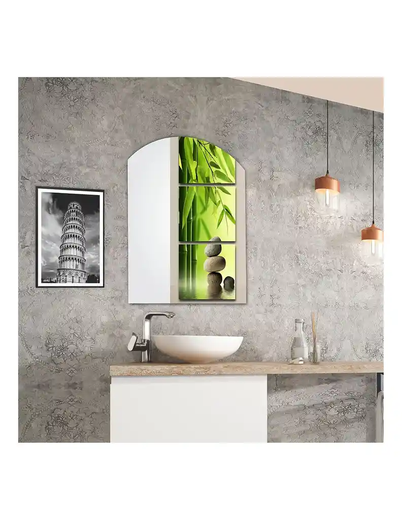 Espejo vidal Espejo rectangular con parte ovalada ovalado en el lado superior Ensamble fácil a la pared con marco en MDP+ chaflán Material: Espejo plata, chaflan en mdp Medidas:60 alto x 45 ancho x 1,9 espesor.