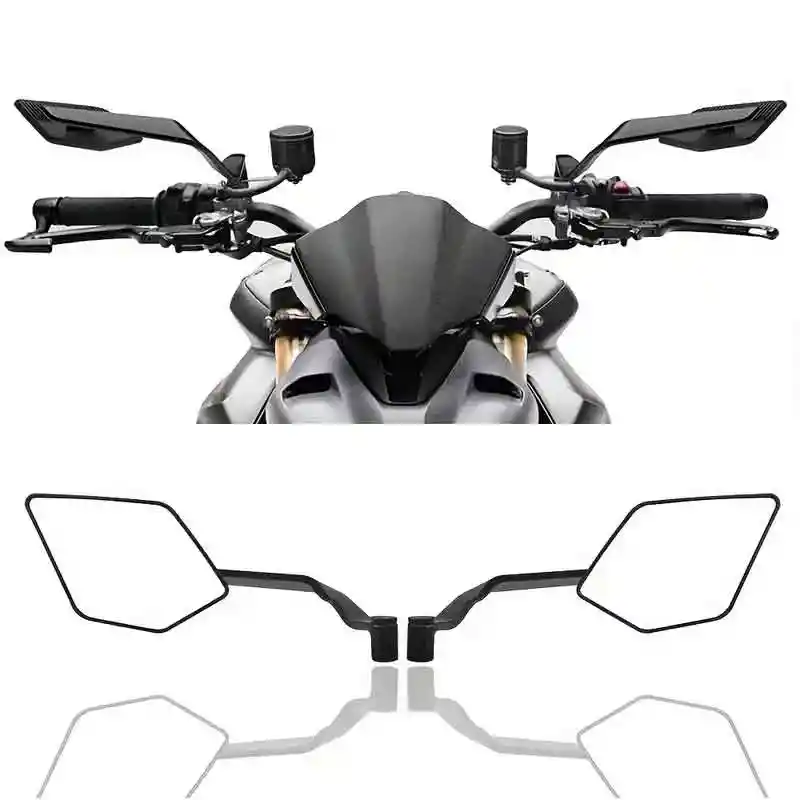 • Con su innovador doble alerón aerodinámico, el Stealth Max mejora la carga aerodinámica y ofrece un aspecto más dinámico y deportivo gracias a su patrón estriado único. • Este espejo combina seguridad y estilo, cumpliendo completamente con las normas. • Los espejos Stealth están diseñados con vidrio de alta definición. • Su geometría convexa, ofrece visibilidad excepcional. • Fabricado con aluminio de alta calidad y tecnopolímero, combina materiales de alto rendimiento. • Lado: Ambos lados • Carcasa (material): aleación de aluminio • Elaborado con aluminio CNC con carcasa resistente a la vibración • Largo: 25 cm • Tamaño (Luna): 14.2 cm * 8.8 cm • Acabado de la superficie: Mate • Es ajustable: Sí • Estilo de conducción en moto: Calle • Se pueden instalar perfectamente en tu motocicleta, universal, tornillos de 8 mm o 10 mm para montar el espejo retrovisor. • El espejo tiene dos conectores roscados, uno en sentido horario y otro en sentido antihorario, además de un tornillo de repuesto para cada uno. • La arandela elástica garantiza que el espejo no se afloje después de la instalación. • La cubierta antipolvo evita que los tornillos se oxiden y que el espejo se suelte. • Apariencia genial: Su forma plegable puede darle a tu motocicleta un aspecto deportivo y combativo. • Nuestro espejo retrovisor está fabricado con materiales plásticos y metálicos resistentes y duraderos, por lo que su durabilidad está garantizada. • ¡Mejora de la visibilidad!: La nueva versión mejorada aumenta el alcance visual del espejo retrovisor en comparación con la versión convencional, por lo que la conducción es más segura. NOTA: En términos de color del elemento, puede ser ligeramente diferente de la pantalla y especificaciones que tenga cada monitor o dispositivo.