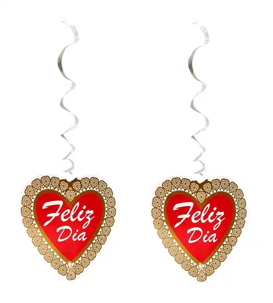 Espiral plateado con corazón rojo feliz dia, estampado en dorado alrededor. Paquete x 2 unidades. El corazón mide 18 cm de alto x 16 cm de ancho