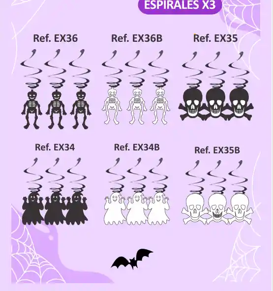 ESPIRALES HALOWEEN DECORACION X3 ELEGIR DISEÑO X EL CHAT UNIDAD