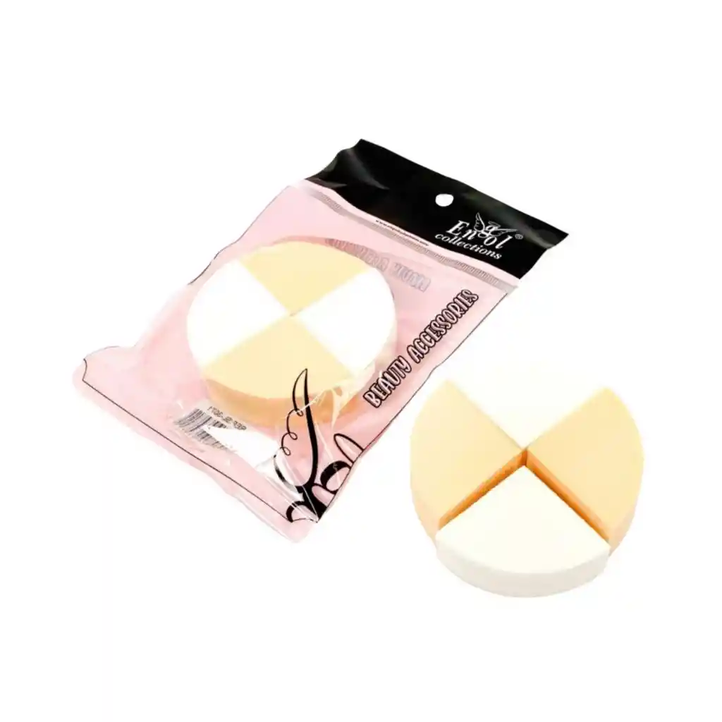 Paquete de esponjas para maquillaje tipo quesitos. Contiene 4 esponjas en color rosa y blanco. Uso dual en seco y mojado. Cómodos de usar, con textura agradable para la piel. Úsalos para aplicar polvos o bases liquidas.