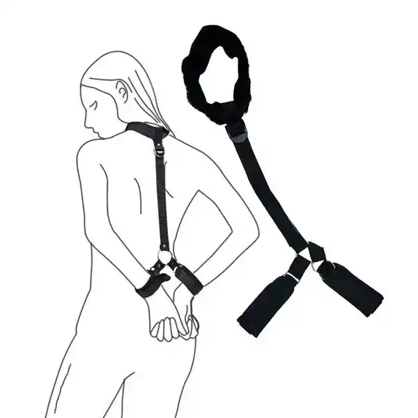 Anti-Back Handcuffs: Esposas para manos y cuello, Inmovilizador de manos, se sujeta al cuello, ideal para practicantes BDSM. Domina a tu pareja y disfruten del juego juntos es muy cómodo para utilizarlo. Ajustable. Explora tus fantasías fetichistas más profundas. Atrévete a probar cosas nuevas, experimentar y llevar a cabo un placer al límite con estas esposas que se utilizan atrás de la espalda, las cuales se unen con una correa a un collar alrededor del cuello, para que así tengas a tu merced a tu amante. Material cómodo y duradero. Cierre de velcro en lo puños. “En todo encuentro erótico hay un personaje invisible y siempre activo: la imaginación”.