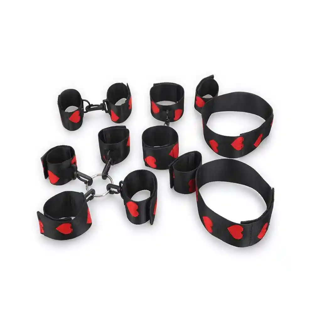 Amarres Esposas Ariel Diviértete y disfruta de un excitante momento a un nivel más alto, cambiarás la monotonía de un sexo normal a uno más ardiente. Con este kit completo de amarres podrás jugar con tu pareja sin límites, pon toda tu imaginación para crear diferentes posiciones. Con ayuda de las esposas, ata a tu pareja a la cama o a cualquier otro lugar que prefieras, tenerla totalmente inmovilizada te proporcionará más placer en su experiencia íntima. Puedes utilizar también un antifaz para incrementar el placer en el juego y como resultado tendrán un momento muy placentero y excitante. Gracias a su diseño de corazones rojos, puedes combinarlas con tu lencería favorita. Características del producto Marca DistriSex Material Cinta De Tela Presentación Esposas negras con corazones rojos Contenido 3 tamaños diferentes de esposas Limpieza Es recomendable limpiar con un pañito húmedo (libre de alcohol) para retirar los residuos corporales que pueden quedar impregnados con su uso. No se debe lavar con abundante agua, ni exponer al sol.