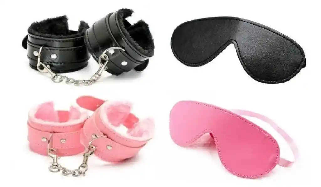 Esposas Cuero Para Amarre + Mascara Ojos (color Rosado)
