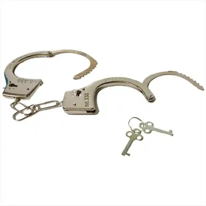 Esposas de Policía - Accesorio Perfecto para tu Disfraz de Halloween ¡Complementa tu disfraz con este accesorio realista y divertido! Esposas metálicas con diseño auténtico para un toque profesional. Incluye llaves funcionales y un seguro de liberación rápida para mayor seguridad. Perfectas para disfraces de policía, agentes secretos o juegos de rol temáticos.