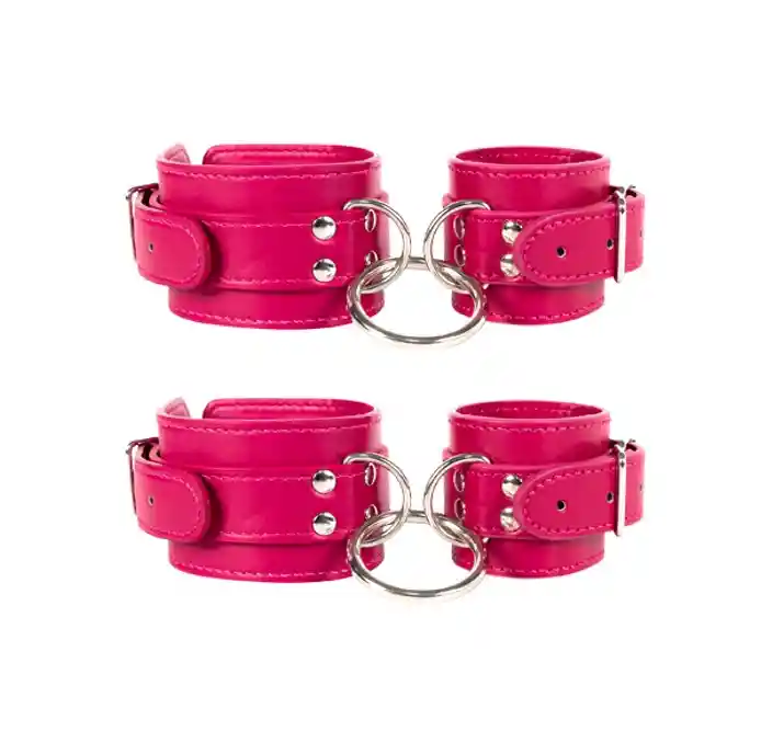 Esposas Pies y manos SLUT FETISH Contiene: - Esposas manos: Cadena: 15cms; Esposa: 23cms - Esposas pies: Cadena: 15cms; Esposa: 32cms - Material: Cuero sintético y metal - Color: Magenta Confidencialidad: Tus pedidos se envían en una caja o sobre totalmente sellado y opaco sin ningún tipo de marcas externas. Para nosotros es muy importante tu privacidad.