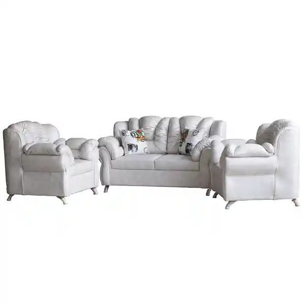 Fabricado en Madera Prana y Micro Suede Incluye: Sofá 2 Puestos + 2 Sillas 2 Cojines Decorativos Medidas de Las Sillas Medidas Del Sofá Está Sala Italiana Una Sala Fresca y Suave Como el Aire Confiable Acogedora y Muy Resistente Material: Prana Tamaño cm: ( Largo x Ancho x Alto) 380 x 86 x 96