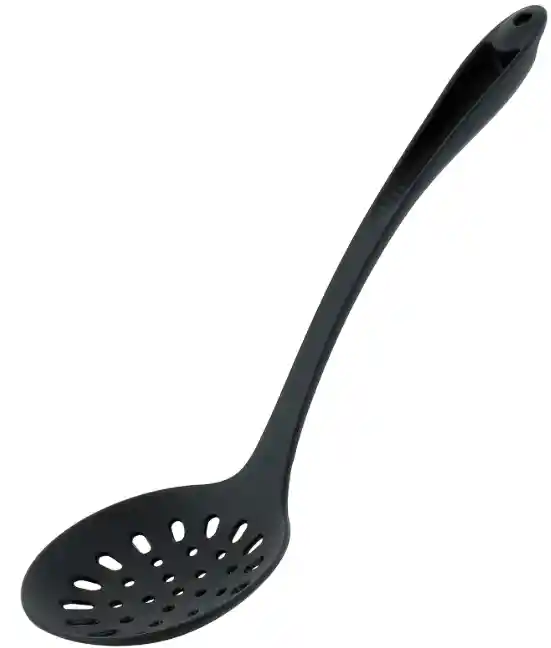 •Espumadera fabricada totalmente en nylon. •Mango en nylon ergonómico y cómodo. •Diseño perforado que facilita el escurrido de aceites y líquidos. •No raya ollas ni sartenes antiadherentes. •Liviana y fácil de manipular. •Ideal para fritos, pastas y verduras. Espumadera de nylon con mango en nylon, ideal para freír, escurrir y retirar alimentos del aceite o agua caliente sin rayar ollas ni sartenes antiadherentes. Su diseño perforado permite drenar líquidos de forma rápida y segura.