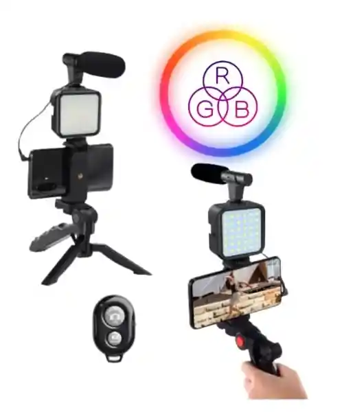 Ideal para Conferencias, Streaming, Zoom, Meet, Videollamadas, Filmaciones, etc. * Micrófono con Filtro de Viento para Reproducir las voces lo mas nítidas posible. * Luz Led Cuadrada de 49 Micro Leds de 3 Intensidades de hasta 650lm. RGB Con luz FRIA - CALIDA - NEUTRA. * Trípode Plegable con Angulo de Rotacion de 120° con Tornillo de Rosca Universal. * Soporte de Celular Extensible de 5.5cm hasta 10.5cm para ajustar cualquier celular. * El Trípode se puede usar apoyado o sujetarlo como si fuera un palo selfie y utilizarlo como un estabilizador. * Se pueden colocar sobre el trípode celulares (utilizando el sujetador) o Cámaras de foto. * El Micrófono se encaja en el sujetador de celular o en la Luz Led. * La Luz Led encaja en el Sujetador de Celular (el Mic no permite colocar nada encima). * Peso Máximo Soportado: 1kg.