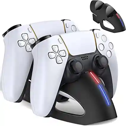 Marca DINOSTRIKE Tecnología de conectividad USB Tipo de conector USB tipo C Dispositivos compatibles Videojuegos Reportaje especial Carga rápida Total de puertos USB 1 Especificación cumplida CE, UL, FCC Fuente de alimentación Eléctrico con cable Clasificación actual 2 Amperios Tipo de conector de alimentación principal 2 pines Ver menos Acerca de este artículo 【Cargador de carga rápida para el controlador PS5】 El soporte de carga está diseñado para cargar dos controladores PS5 simultáneamente, puede cargar completamente sus controladores dualsense en 3 horas bajo una fuente de alimentación de 5V / 2A, asegurando que siempre tenga un controlador PS5 cargado listo para usar, ahorre tiempo para disfrutar mejor de los juegos, es un accesorio esencial de PS5 para sus controladores PS5 【Indicador LED】 El indicador LED en esta estación de carga PS5 indicaría el estado de carga para ayudarlo a obtener el proceso de carga con claridad. La luz roja en la pantalla muestra el estado de carga, la luz azul muestra completamente cargada 【Protección de carga inteligente】 El chip inteligente incorporado proporciona protección contra sobrecarga, este cargador para el controlador PS5 se detendrá para cargar sus controladores PS5 después de que se hayan cargado por completo, deje el controlador en la estación de carga sin preocuparse por la sobrecarga, protege sus controladores de sobrecarga, sobretensión, sobrecalentamiento y cortocircuito 【Fácil de usar y almacenar】 Simplemente coloque dos controles remotos PS5 en la estación de acoplamiento del cargador del controlador PS5 para mantener sus controladores PS5 firmemente asentados, se puede usar como soporte de controlador para mantener sus controladores PS5 en su lugar, hacer que su escritorio ya no esté desordenado 【Lo que obtienes】 El paquete incluye: 1 x Base de carga para sus controladores PS5 DualSense, 1 x Cable de carga USB C. Un regalo de ps5 ideal para ti y tus amigos. Por favor, no dude en ponerse en contacto con nosotros si necesita ayuda sobre nuestro producto y servicio