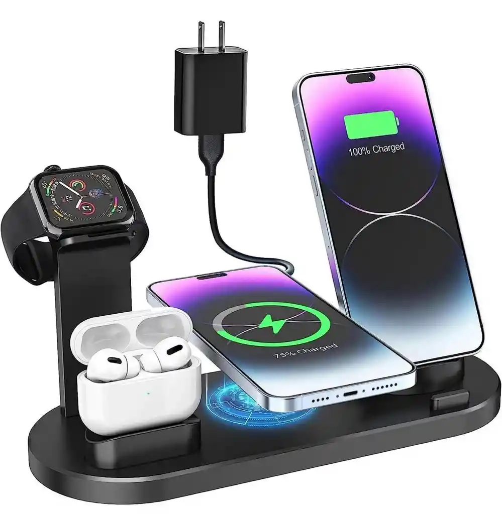 Estación de carga inalámbrica 6 en 1 Carga hasta 6 dispositivos al mismo tiempo en un solo lugar, sin tantos cables y con carga rápida. ✨ Características: • Carga inalámbrica rápida de 15W • Compatible con iPhone, Apple Watch y AirPods • Carga varios dispositivos al mismo tiempo • Diseño compacto que ahorra espacio • Fácil de usar: conectar y listo • Protección contra sobrecarga y cortocircuito Perfecta para tu mesa de noche, escritorio o lugar de trabajo.