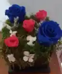 Caja de 12*12*12 2 rosas estándar 3 rosas baby y follaje Material: madera