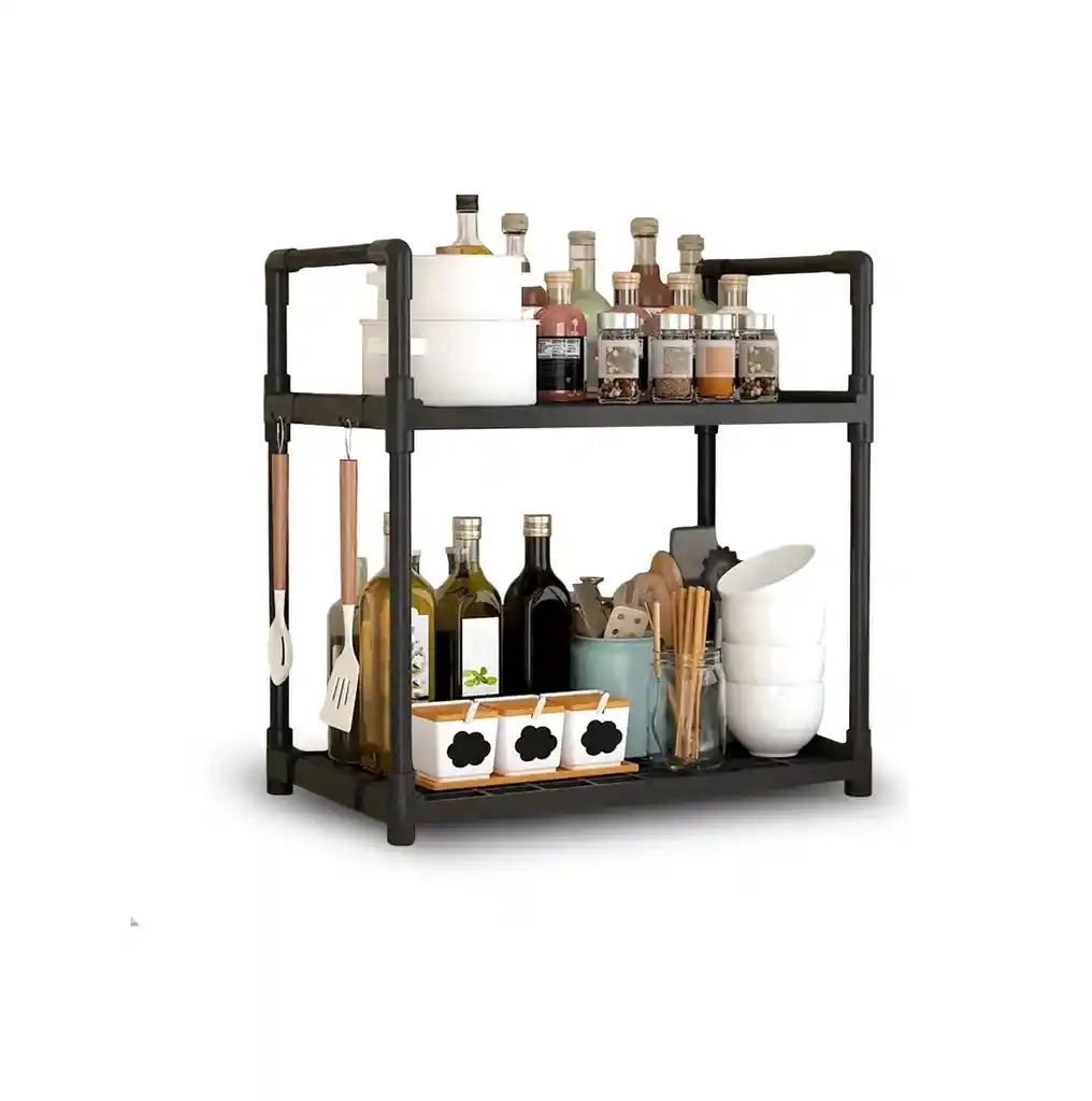 Optimiza y transforma tu cocina con este estante organizador multifuncional de 2 niveles, diseñado para aprovechar al máximo el espacio vertical y mantener cada elemento en su lugar. Su estructura resistente permite colocar microondas, hornos eléctricos, freidoras de aire, cafeteras u otros electrodomésticos en la parte inferior, mientras que el nivel superior funciona como repisa adicional para utensilios, especias, frascos o artículos de uso diario. Su diseño práctico y funcional lo convierte en la solución ideal para cocinas pequeñas, departamentos o espacios donde el orden y la organización son prioridad. Además, su estilo moderno se integra fácilmente con diferentes tipos de decoración. Características principales Diseño de 2 niveles para mejor aprovechamiento del espacio. Estructura metálica resistente y estable. Amplia capacidad de carga. Ideal para microondas y electrodomésticos pequeños. Diseño funcional y moderno. Fácil armado e instalación sobre encimera. Formas de uso Soporte para microondas con almacenamiento superior. Organizador para cafeteras, freidoras de aire u hornos eléctricos. Estante auxiliar para especias y utensilios. Repisa adicional para despensa o área de preparación. Cuidados del producto Limpiar con paño suave húmedo. No utilizar productos abrasivos ni químicos fuertes. Secar completamente después de la limpieza. Revisar periódicamente el ajuste de tornillos. Recomendaciones de uso Colocar sobre superficie plana y firme. Distribuir el peso de manera uniforme. No exceder la capacidad máxima de carga recomendada por el fabricante. Verificar previamente las dimensiones del electrodoméstico que se colocará.