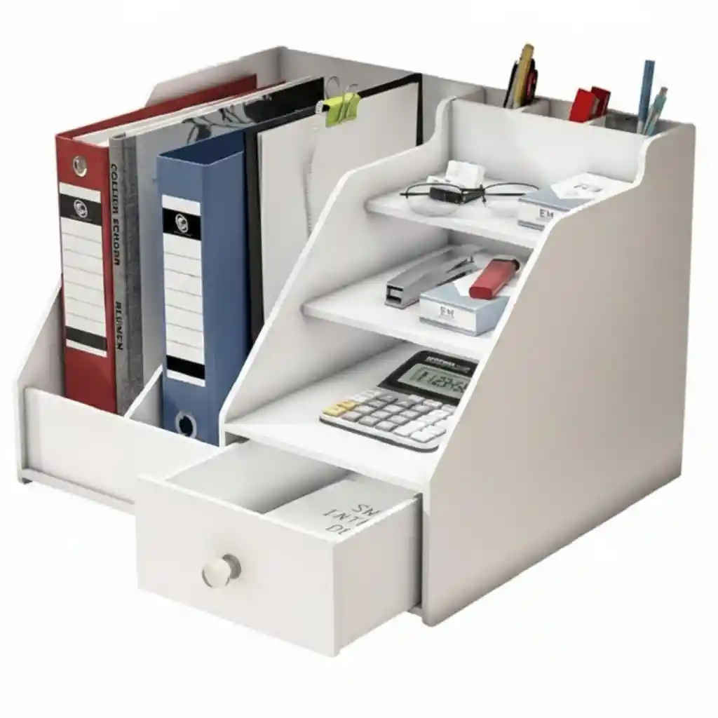 Estante Organizador de Escritorio – Resistente, Ecológico y Multifuncional Optimiza tu espacio de trabajo con este práctico Estante Organizador de Escritorio, diseñado para mantener documentos, accesorios y artículos diarios perfectamente ordenados. Su estructura resistente, materiales ecológicos y diseño elegante lo convierten en el complemento ideal para oficina, estudio o habitación. Características Principales Estructura reforzada y duradera Diseño de marco resistente con alta capacidad de carga para uso prolongado. Materiales ecológicos y seguros Fabricado con materiales saludables, libres de formaldehído, seguros para el hogar y la oficina. Diseño estable y seguro Incluye almohadillas antideslizantes que evitan deslizamientos o rayones sobre la superficie. Gran capacidad de almacenamiento Permite organizar documentos, papelería, artículos personales y objetos de uso diario. Exquisita mano de obra Bordes redondeados, superficie pulida sin rebabas, segura para las manos. Instalación flexible Puede colocarse sobre cualquier superficie plana o instalarse en la pared para ahorrar espacio. Especificaciones Técnicas Producto: Estante Organizador de Escritorio Material: Material ecológico de alta resistencia Uso recomendado: Oficina, estudio, dormitorio, escritorio Montaje: Fácil montaje Diseño: Moderno y elegante Capacidad: Alta Sistema de estabilidad: Pies antideslizantes Dimensiones (Aprox.) Largo: 44 cm Ancho: 24 cm Alto: 28 cm Contenido del Paquete 1 × Estante Organizador de Escritorio Garantía Este producto cuenta con 30 días de garantía por defectos de fabricación. Política de Retracto Aplica derecho de retracto dentro de los 5 días hábiles posteriores a la entrega. El producto debe devolverse sin uso, en perfecto estado y con su empaque original intacto. Nota Importante Para aplicar garantía o retracto, es necesario enviar fotos o videos que evidencien claramente el estado del producto. La garantía no cubre daños por golpes, humedad, mal uso o manipulación indebida.