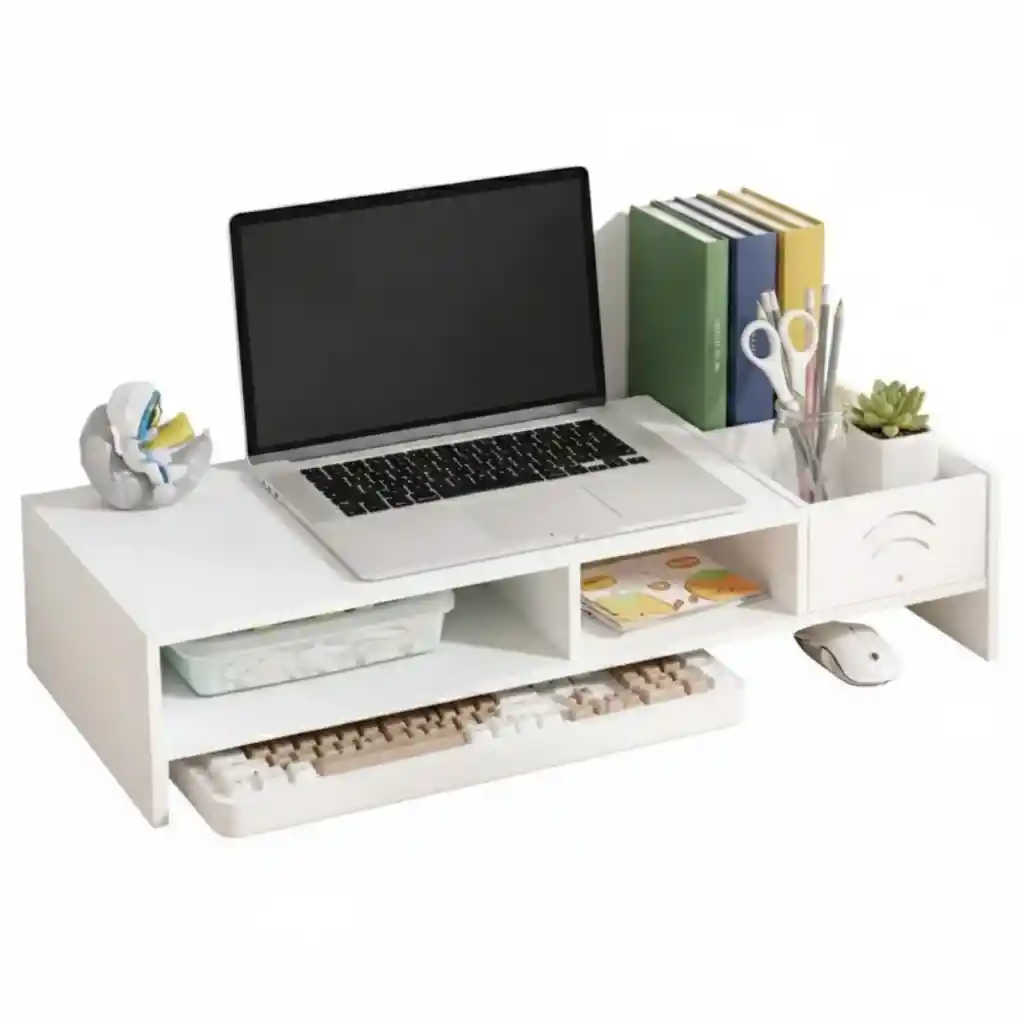 Estante Organizador de Escritorio para Laptop – Multifuncional y Moderno Optimiza tu espacio de trabajo con este soporte organizador de escritorio multifuncional, ideal para laptops, teclados, accesorios de oficina y artículos personales. Su diseño moderno y minimalista eleva tu portátil a una altura cómoda, mejora la postura y ayuda a mantener tu escritorio ordenado, combinando funcionalidad y estilo. Cuenta con múltiples compartimentos amplios para guardar teclado, mouse, cuadernos, útiles de oficina y otros accesorios, aprovechando al máximo el espacio disponible. Perfecto para el hogar, oficina o estudio. Características Principales Soporte elevado para laptop o monitor, mejora la ergonomía y postura. Organizador multifuncional con compartimentos para teclado, mouse, cuadernos y accesorios. Ahorro de espacio y orden: mantiene el escritorio despejado y organizado. Diseño moderno y elegante, se adapta a cualquier estilo de oficina o estudio. Uso recomendado: hogar, oficina, estudio, home office. Especificaciones Técnicas Material: Plástico resistente y ecológico, superficie pulida. Peso: Ligero y fácil de mover. Capacidad de carga: Adecuado para laptops y accesorios de oficina. Tipo de montaje: Sobre superficie plana, sin necesidad de instalación. Dimensiones (Aprox.) Largo: 49 cm Ancho: 20 cm Alto: 10 cm Contenido del Paquete 1 × Estante Organizador de Escritorio para Laptop Garantía Este producto cuenta con 30 días de garantía por defectos de fabricación. Política de Retracto Aplica derecho de retracto dentro de los 5 días hábiles posteriores a la entrega. El producto debe devolverse sin uso, en perfecto estado y con su empaque original intacto. Nota Importante Para aplicar garantía o retracto, es necesario enviar fotos o videos que evidencien claramente el estado del producto.