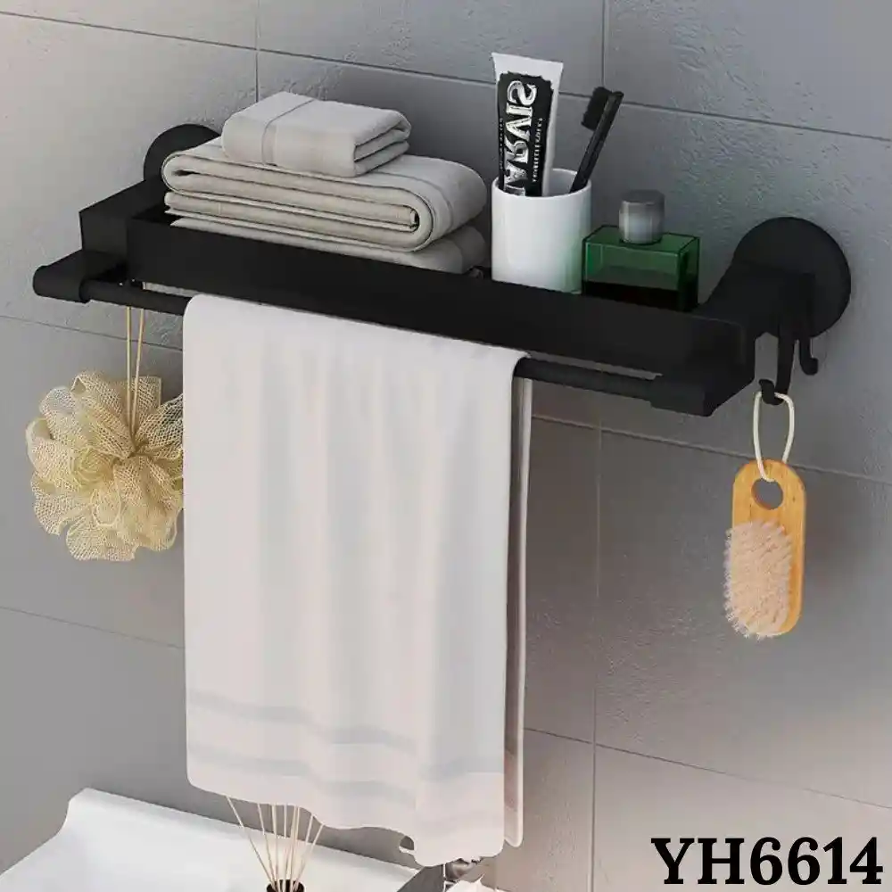 Estante Repisa Soporte De Pared Para Baño Toallero Organizador De Espacio Optimiza el espacio de tu baño con este práctico y moderno estante de pared con toallero incorporado, diseñado para mantener tus artículos organizados, accesibles y en perfecto orden. Su diseño elegante y funcional convierte cualquier pared en un punto de almacenamiento eficiente. Características: - Diseño 2 en 1: Estante superior + barra toallero inferior, ideal para colocar toallas, papel higiénico, productos de higiene, decoraciones o accesorios de baño. - Instalación sencilla: Se puede fijar mediante adhesivo fuerte, sin necesidad de perforación. - Estilo moderno y minimalista: Diseño compacto y elegante que combina fácilmente con cualquier tipo de decoración. Especificaciones: Dimensiones: 45 cm (largo) × 17 (profundidad) × 7 cm (alto) (APROX) Incluye: - Estante - Barra toallero - Adhesivos