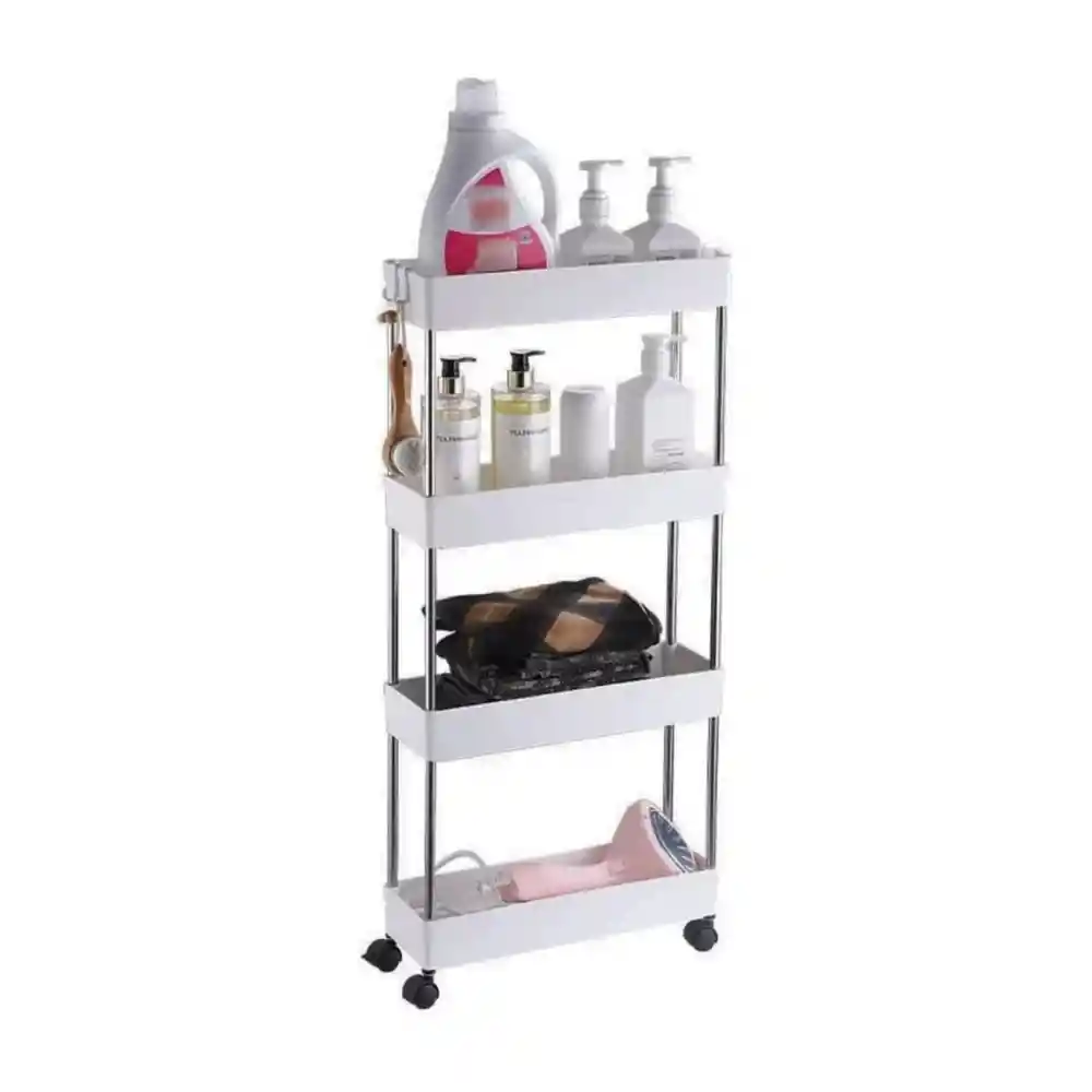 Organízate con comodidad utilizando el estante tipo cesta Trolley de 4 niveles con ruedas en color blanco. Con un diseño que brinda más organización y belleza a sus espacios, este artículo es ideal para usar en cocinas, baños, lavanderías, oficinas y otros entornos, según sea necesario. Desarrollado con varillas de soporte de acero inoxidable y plástico PP blanco de alta resistencia, también tiene ruedas que giran 360° para facilitar la movilidad y el manejo.