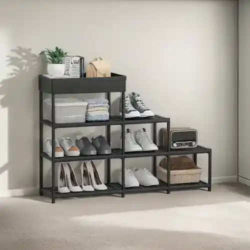 DISEÑO ESCALONADO MODERNO Y ELEGANTE Este práctico zapatero de 6 niveles combina funcionalidad con diseño moderno. Su estructura escalonada permite aprovechar al máximo el espacio vertical y darle un toque decorativo a cualquier habitación. GRAN CAPACIDAD Y VERSATILIDAD Cuenta con 6 niveles ideales para organizar hasta 16 pares de zapatos de diferentes tamaños y estilos: deportivos, botas, tacones y más. También puedes usarlo para guardar ropa doblada, cajas organizadoras, libros, bolsos, accesorios e incluso decoración. ORGANIZADOR MULTIFUNCIÓN Además de ser un excelente zapatero, puedes utilizarlo como estantería auxiliar en el dormitorio, sala, closet, baño o entrada del hogar. Perfecto para mantener todo en su lugar sin perder el estilo. FÁCIL DE ARMAR Y DESARMAR Incluye todas las piezas necesarias para su ensamble. No necesitas herramientas especiales, ¡lo puedes armar en minutos! MATERIAL RESISTENTE Y LIGERO Fabricado en tubos metálicos reforzado con conectores plásticos y niveles en tela no tejida resistente. Soporta el peso de múltiples objetos sin deformarse. Medidas aproximadas: Ancho: 85 cm Alto: 80 cm Profundidad: 30 cm Lo que obtienes al comprar: 1- Zapatero De 6 Niveles Escalonado 1 - Instrucciones de armado Ideal para hogares modernos, minimalistas o pequeños espacios. ¡Aprovecha esta solución práctica, económica y decorativa!