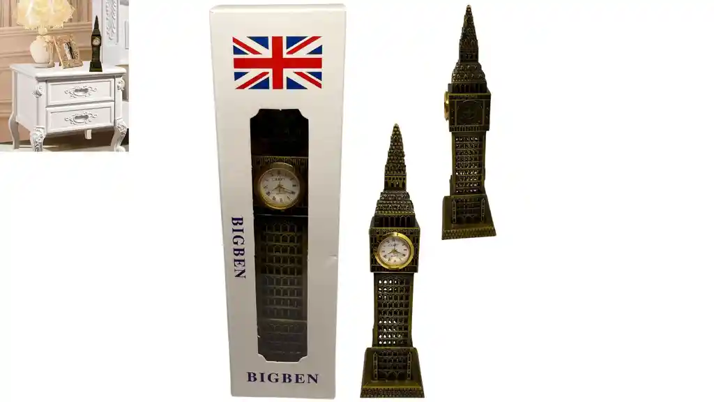 Referencia: SZ060S Revive el encanto de Londres con esta sofisticada réplica del icónico Reloj Big Ben. Una pieza decorativa elaborada en metal resistente, ideal para coleccionistas, viajeros o amantes de los monumentos históricos. Con una altura de 18 cm, su diseño detallado y acabado en tono bronce envejecido aporta un toque clásico y elegante a cualquier espacio: oficinas, estudios, salas o vitrinas. Una excelente opción como regalo o elemento de decoración temática. CARACTERÍSTICAS: Réplica del Big Ben – Monumento del Mundo Altura: 18 cm Material: Metálico Color: Bronce antiguo Diseño detallado y resistente Ideal para decorar, regalar o coleccionar Condición del producto: Nuevo ¿QUÉ INCLUYE TU PRODUCTO? 1 Estatua metálica Big Ben de 18 cm Dale a tu hogar o espacio personal un símbolo del Reino Unido con gran valor decorativo. ZZZZZZZZZZZZZZZZZZZZZZZZZZZZZZZZZZZZZZZZZZZZZZZZZZZZZZZZZZZZZZZZZZZZZZ MÁS DETALLES: Condición: Nuevo MAS INFORMACIÓN DE NOSOTROS Somos INVERSIONES MAZUGI. Importadores directos desde china Cumplimos con distribuir a todo el país. Estamos ubicados en Bogotá, somos tienda virtual y física PRODUCTOS AL POR MAYOR Y DETALLE Somos una empresa importadora y comercializadora de productos de Alta Calidad de varias categorías como: belleza, tecnología, hogar, juguetería, cuidado personal, entre otras. Garantía del vendedor: 1 meses