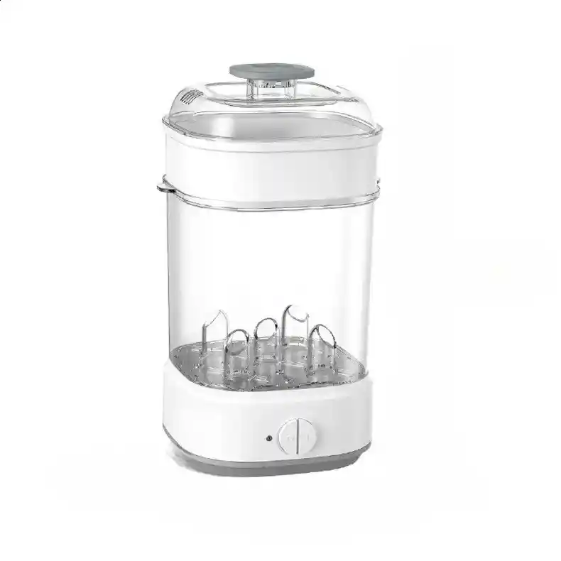 Esterilizador De Biberones, Esterilizador De Vapor Para BibeEsterilizador De Biberones, ¡Mantén los biberones de tu bebé libres de gérmenes y secos con el Esterilizador de Premium Baby! – Esterilización a vapor: Elimina el 99,99% de las bacterias dañinas de biberones, chupetes y otros accesorios de alimentación para bebés – Incluye pinza: Retira los biberones esterilizados sin riesgo de quemaduras. – Libre de BPA: Materiales seguros para tu bebé. – Capacidad para 5 biberones: Esteriliza Limpieza profunda, seguridad y tranquilidad para mamá y bebé. Mantén los biberones, chupones y accesorios de tu bebé libres de gérmenes con el esterilizador eléctrico , diseñado para ofrecerte la máxima higiene de forma rápida y segura. Su avanzada tecnología logra una esterilización completa en solo 8 minutos, eliminando hasta el 99.9% de las bacterias sin necesidad de productos químicos. Con capacidad para hasta 5 biberones al mismo tiempo y una temperatura de 100 °C, este esterilizador garantiza una limpieza profunda en cada ciclo. Además, su función de apagado automático y su luz indicadora de uso te ofrecen comodidad y seguridad durante todo el proceso. Incluye una cesta adicional para esterilizar accesorios pequeños como chupones, tetinas, mordederas o extractores de leche. Está fabricado con materiales libres de BPA, seguros y duraderos, ideales para el cuidado diario del bebé. varios biberones a la vez.