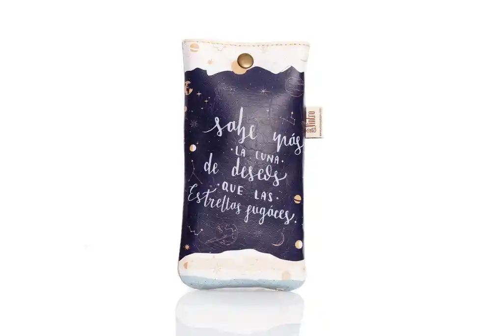 Perfecta para llevar tus gafas o tu celular. abullonado para mejor protección. Interior en tela antifluido. exterior en cuero vegano. Cierre con broche.Medidas: 10 cm ancho x 18 cm alto c 1 profundidad