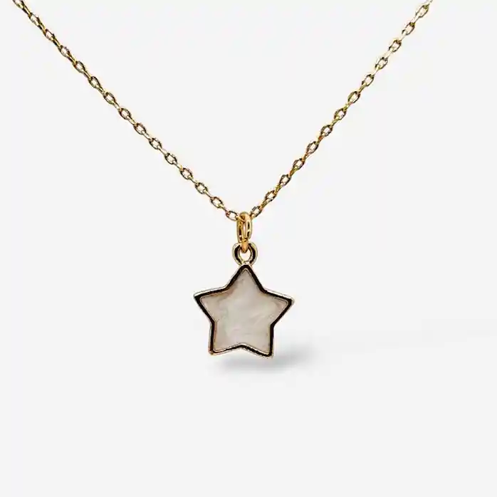Ilumina tu estilo con el Collar Estrella Blanca, un accesorio delicado y sofisticado que añade un toque especial a cualquier look. Su dije con acabado nacarado resalta su diseño elegante y atemporal. Fabricado en bronce con baño de rodio y oro de 18K, es una pieza resistente y perfecta para el día a día. • Material: Bronce con baño de rodio y oro de 18K. • Hipoalergénico: Ideal para pieles sensibles. • Cadena de 45 cm: Ajuste cómodo y versátil. • Dije con acabado nácar artificial: Estrella de 1.4 cm x 1.2 cm. • Resistente y duradero: No se pone negro con el tiempo. Un collar perfecto para quienes aman los accesorios sutiles pero con mucho estilo.