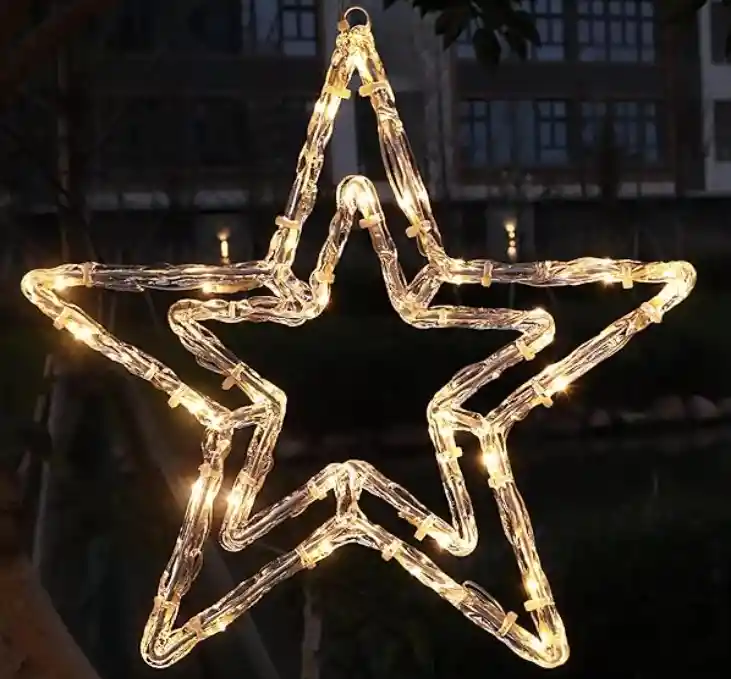 Estrella de navidad con luz multicolor y cálida. Tamaño 20 cm de diámetro. Tiene diferentes modos., se puede dejar fija en luz cálida o fija en luz multicolor.