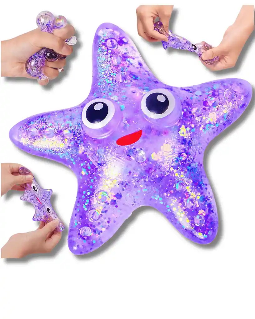 ¡Diversión que relaja! Esta estrella squishy de textura suave y rellena de brillos es perfecta para manos inquietas, momentos de ansiedad o simplemente para jugar y disfrutar. 🔹 Diseño adorable: ojos grandes, sonrisa amigable y colores vibrantes que encantan a niños y adultos. 🔹 Textura flexible y agradable: se estira, aprieta y vuelve a su forma, ideal para liberar tensión. 🔹 Relleno brillante y divertido: con cuentas y glitter que estimulan la vista y el tacto. 🔹 Uso terapéutico y recreativo: excelente para mejorar la concentración, calmar emociones o como juguete sensorial.