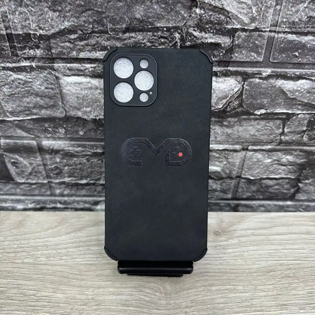 Funda para iPhone 12 Pro MAX, logo Celuelectro CMD , material tipo gamuza y plástico.