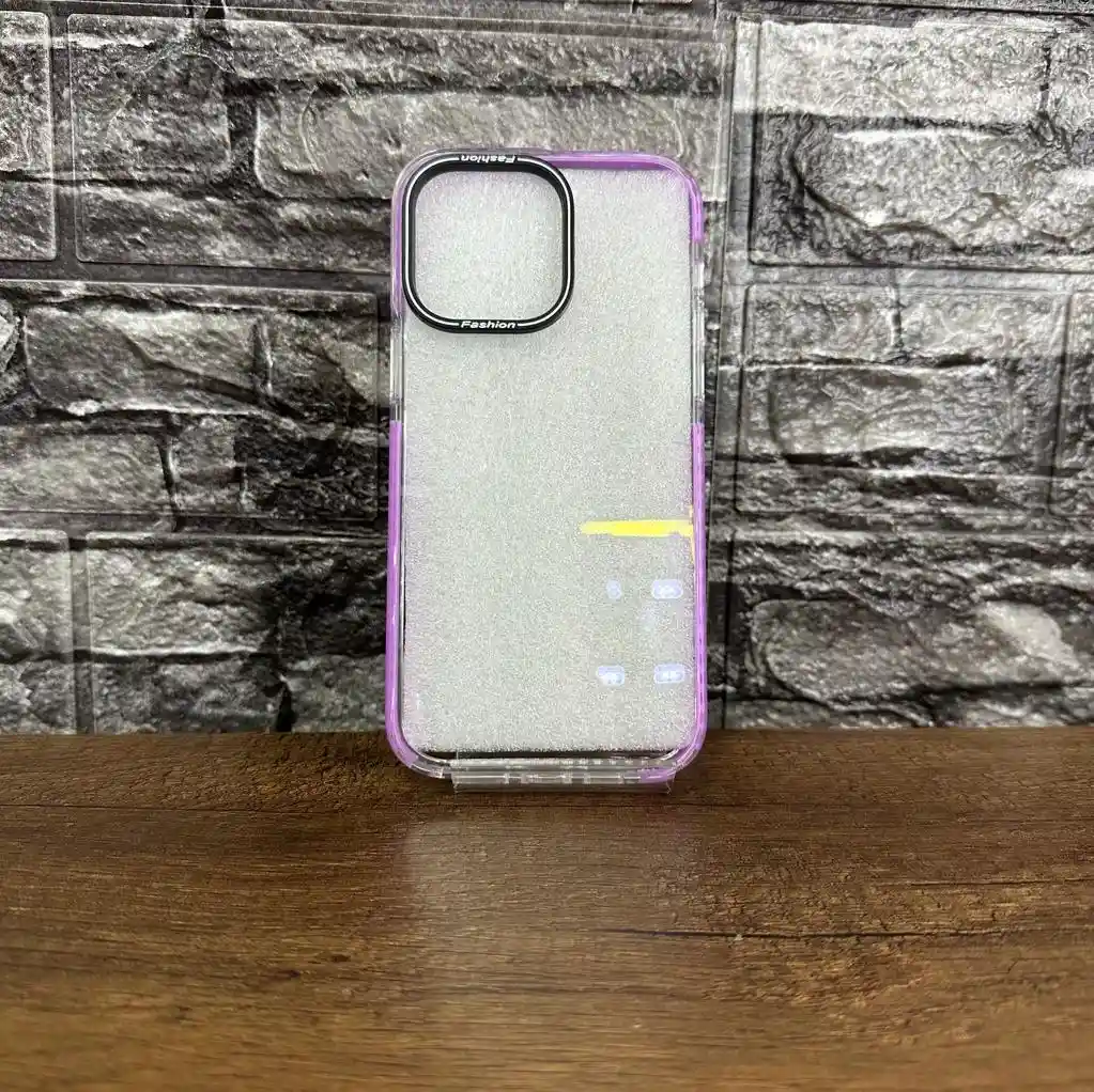 ESTUCEH PARA 14 PRO MAX, TRANSTAPERENTE CON BORDES MORADOS EN SILICONA,REALSE PARA PROTECCION DE CAMARAS