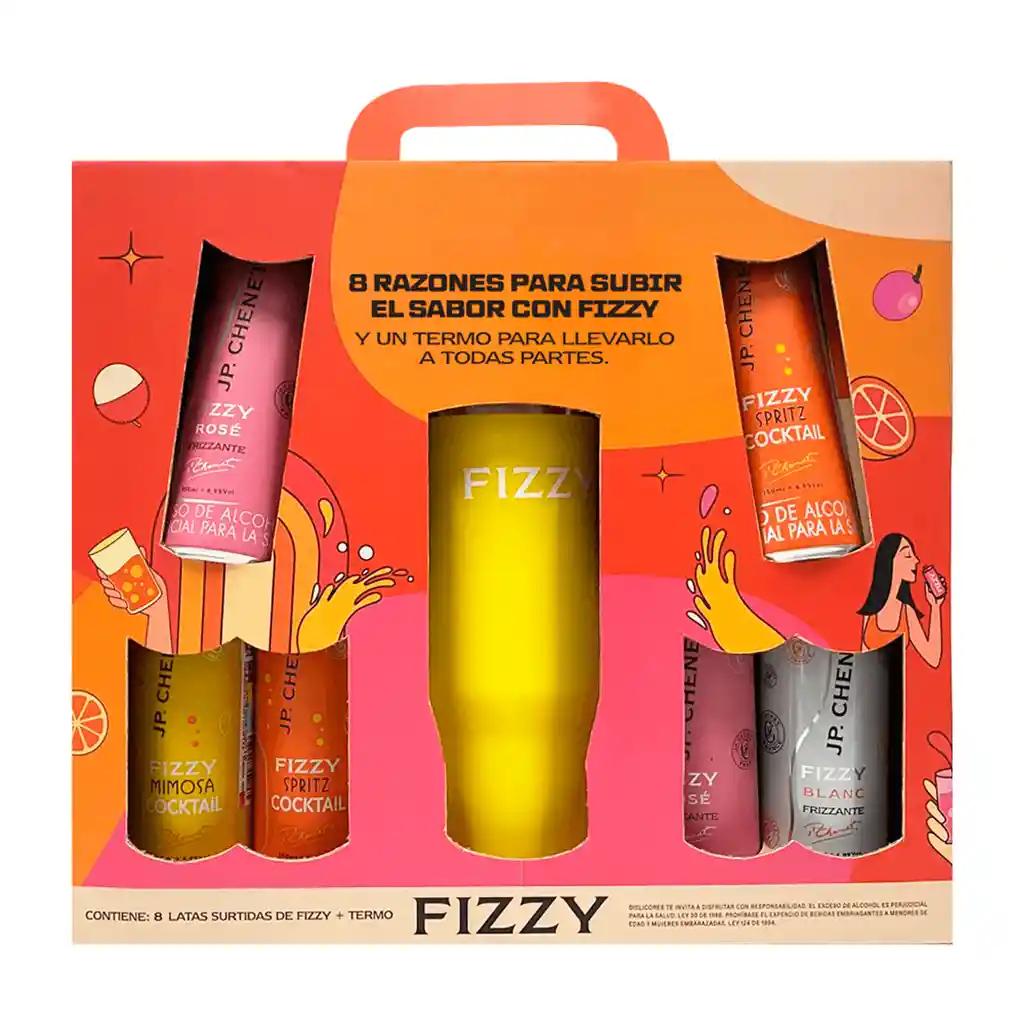 Estuche 8 Jp Chennet Fizzy lata + Termo tipo Stanley