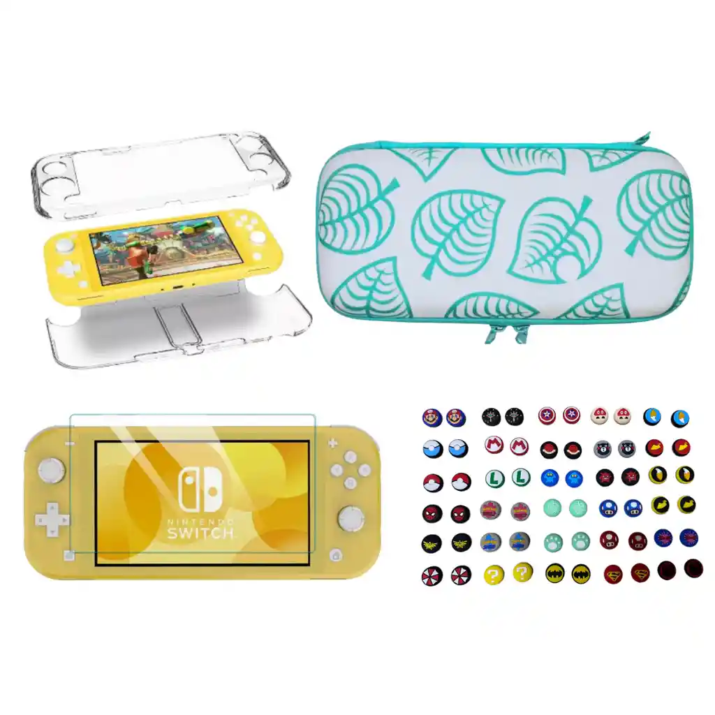 Esta compra incluye: - 1 Par De Grip - 1 Acrilico Transparente - 1 Vidrio Templado - 1 Estuche Rigido Edicion Animal Crossing COMPATIBLE UNICAMENTE CON NINTENDO SWITCH LITE
