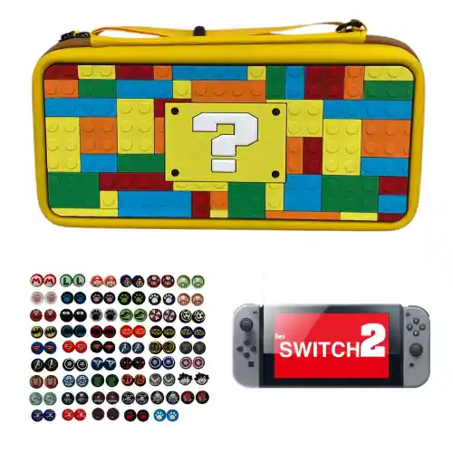 Estuche De Diseño Signo Bloques + Vidrio + 2 Grips Compatible Con Switch 2