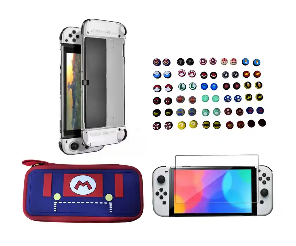 Estuche De Diseño Vestido Mario + Vidrio Templado + Acrílico Protector + 2 Grips Solo compatible con consola Switch OLED