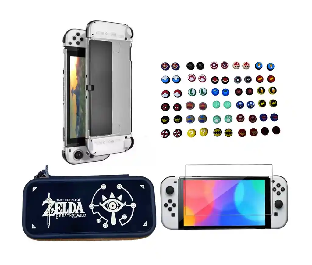 Estuche De Diseño Zelda Bowt + Vidrio Templado + Acrílico Protector + 2 Grips Para Switch Oled Solo compatible con consola Switch OLED