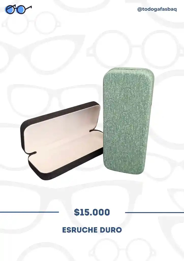 Estuche para gafas tipo cofre, resistente y duro. Disponible en color Negro y Verde Incluye paño microfibra