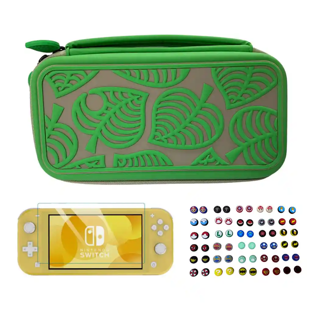 *¡¡BIENVENIDO A TONATEK!!* 1. CARACTERISTICAS DE LA COMPRA: 1.1 Esta compra incluye: - 1 Estuche Edicion Animal Crossing + Vidrio + 2 Grips Para Switch Lite 1.2 Características del producto: El combo de estuche edición Animal Crossing, vidrio protector y grips compatible con Nintendo Switch Lite es una excelente opción para proteger tu consola y mejorar la comodidad al jugar. El estuche rígido edición Animal Crossing permite guardar y transportar la consola de forma segura, ayudando a protegerla de golpes, polvo y rayones cuando la llevas en mochilas, bolsos o equipaje. Su diseño inspirado en el popular juego le da un estilo atractivo para los fans.