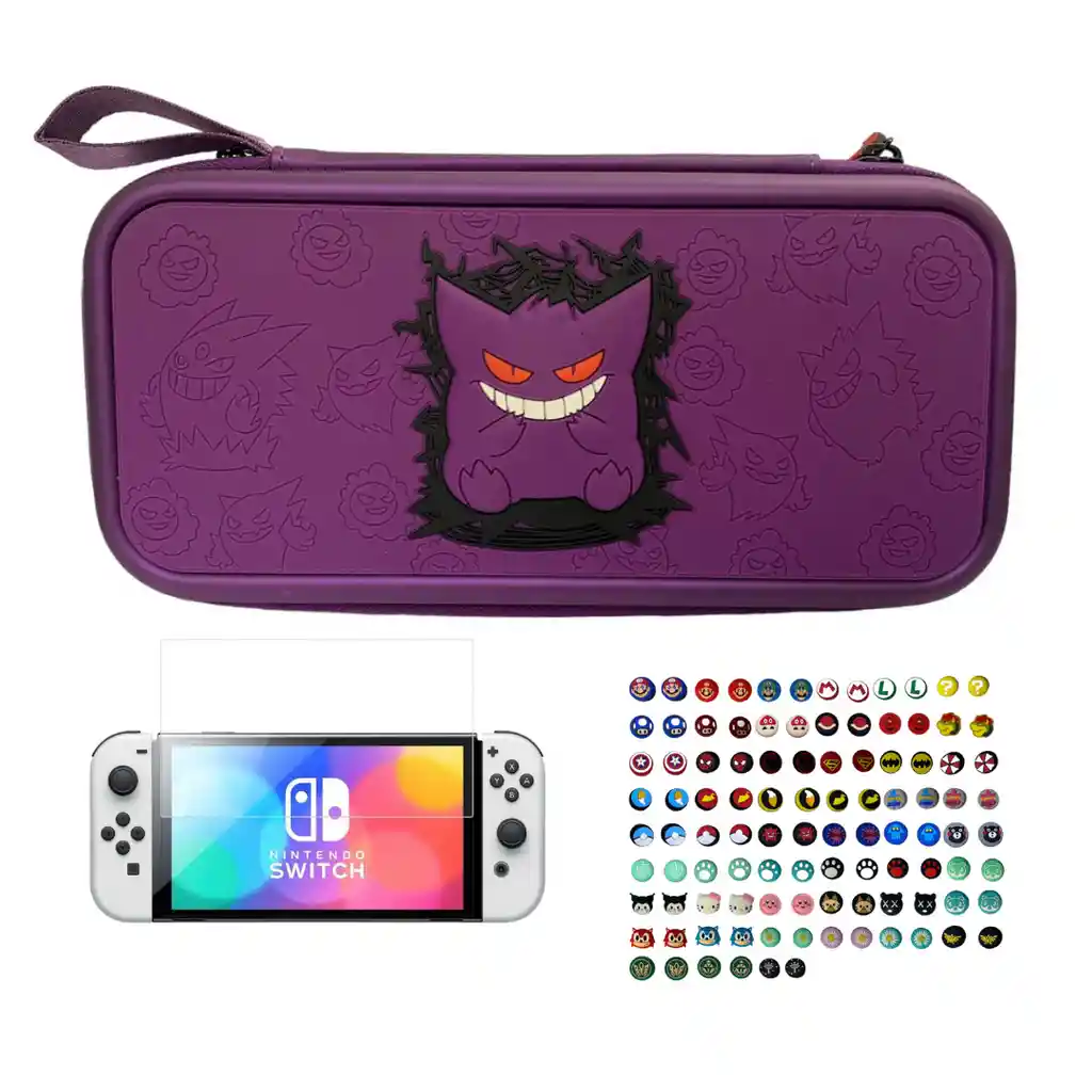 Esta compra incluye: - 1 Estuche Diseño Gengar - 1 Vidrio - 2 Grips Compatible Con Switch OLED