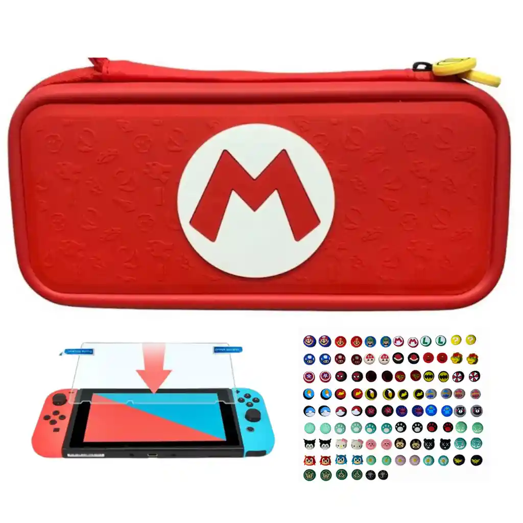 Esta compra incluye: - 1 Estuche de diseño - 1 Vidrio templado - 2 Grips (1 par) COMPATIBLE CON SWITCH ESTANDAR