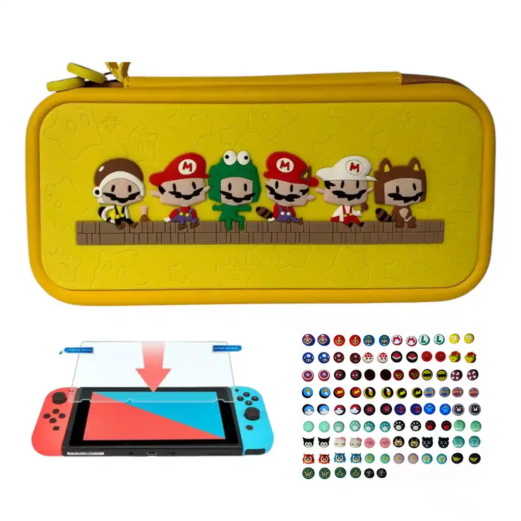 Esta compra incluye: - 1 Estuche de diseño - 1 Vidrio templado - 2 Grips (1 par) COMPATIBLE CON SWITCH ESTANDAR