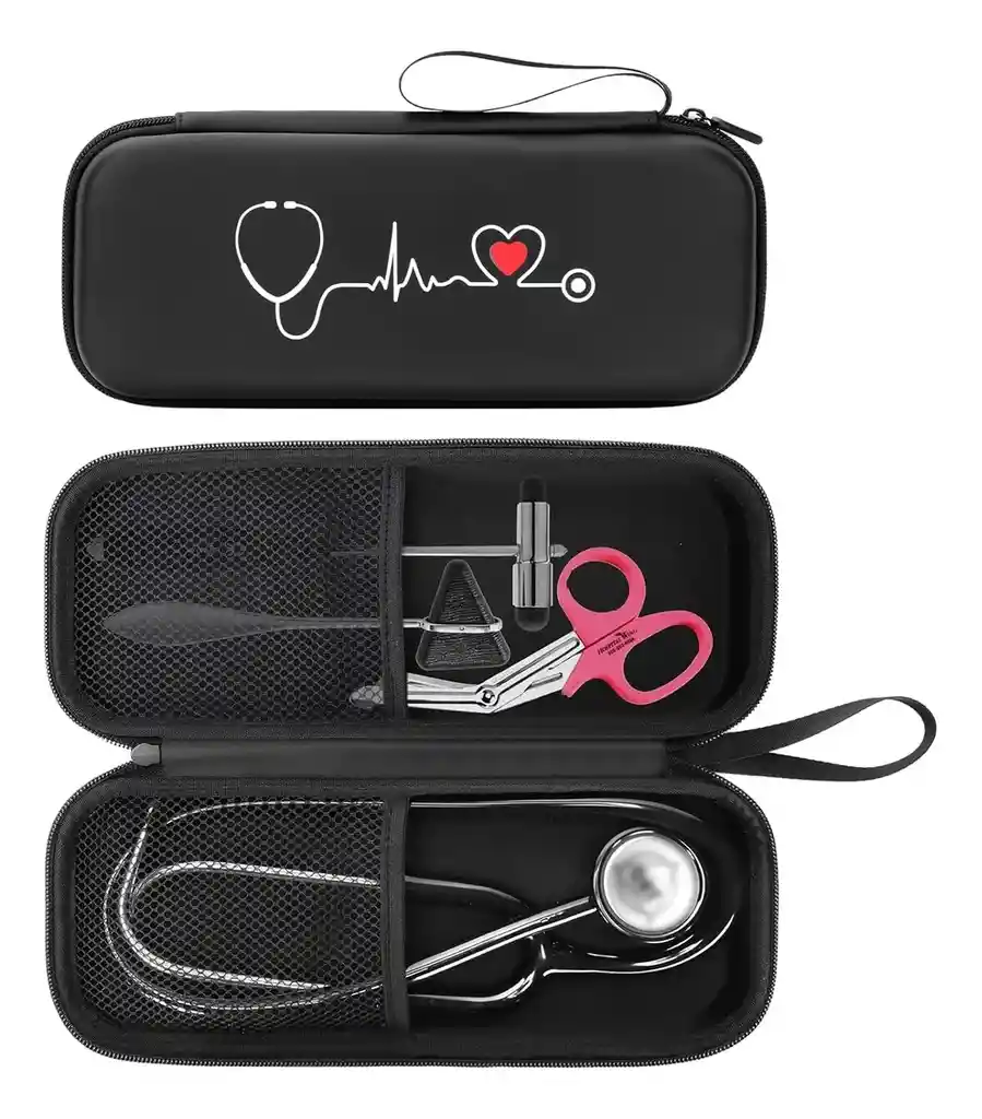 Yinke Funda para estetoscopio 3M Littmann Classic III/Lightweight II S.E./MDF Acoustica Estetoscopio y Cardiology IV, regalo para enfermera, bolsa de almacenamiento con partición (negro) Alta capacidad: el estuche de almacenamiento de estetoscopio para enfermera es compatible con 3M Littmann Classic III/Lightweight II S.E./MDF Acoustica Stethoscope & Cardiology IV Stethoscopie. Dimensión interna: 11,4 x 4,8 x 2,6 pulgadas. (Para la venta es solo funda, el dispositivo y los accesorios no están incluidos) Conveniencia de transporte: Gran capacidad extra de espacio Reflex Hammer & Pen Light y más accesorios. Peso ligero de 6.35 oz. Bajo la premisa de garantizar que la carcasa sea fuerte, tratamos de hacer que la caja sea ligera y fácil de llevar. Viene con correa de mano que facilita el transporte. Gran protección: Hecho de carcasa dura EVA duradera, protege tu estetoscopio del impacto accidental de golpes y caídas. Correa elástica fuerte y bolsa de malla de doble cara que pueden sostener firmemente tu estetoscopio y accesorios de tther. Gran opción de regalo: regalo ideal para estudiantes, enfermeras, médicos, médicos y más. Este producto mejorará en gran medida su almacenamiento y realización de estetoscopios. Garantía del vendedor: 3 meses