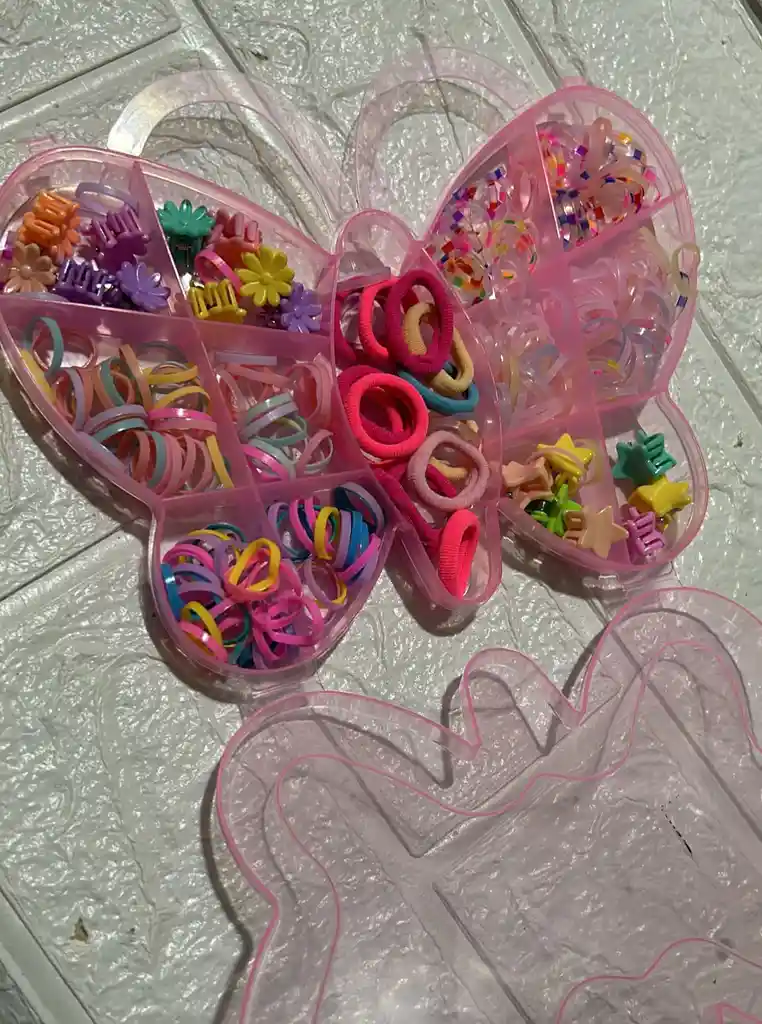 ESTUCHE GRANDE MARIPOSA CAUCHOS PARA CABELLO CAUCHITOS MOÑAS GANCHITOS PIOJITOS COD.2881
