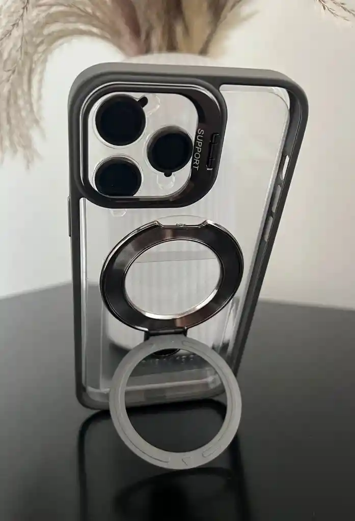 ESTUCHE DOBLE HOLDER + PROTECCION CAMARA IPHONE 14 PRO MAX GRIS