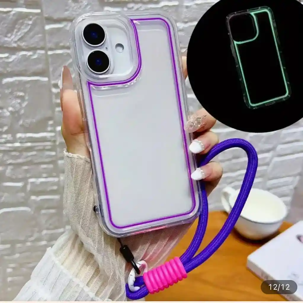 00229500369 - Estuche luminoso para iphone 16 pro max con cuerda colgante – protección y estilo dale a tu iphone 16 pro max un toque moderno y funcional con este estuche luminoso con cuerda colgante en color morado. diseñado para ofrecer protección, comodidad y un look único, este accesorio es perfecto para quienes buscan estilo sin sacrificar seguridad. características destacadas: efecto luminoso: resalta en la oscuridad con un brillo sutil y llamativo. material resistente: fabricado con tpu de alta calidad para absorber impactos y prevenir rayones. cuerda colgante fija: permite llevar el teléfono cómodamente al cuello o cruzado sin ajustes. ajuste preciso: accesibilidad total a botones, puertos y cámara sin afectar la funcionalidad. diseño elegante: color morado vibrante que complementa cualquier estilo. lleva tu iphone con total seguridad y estilo con este estuche luminoso con cuerda colgante, ideal para quienes buscan comodidad y protección en su día a día.