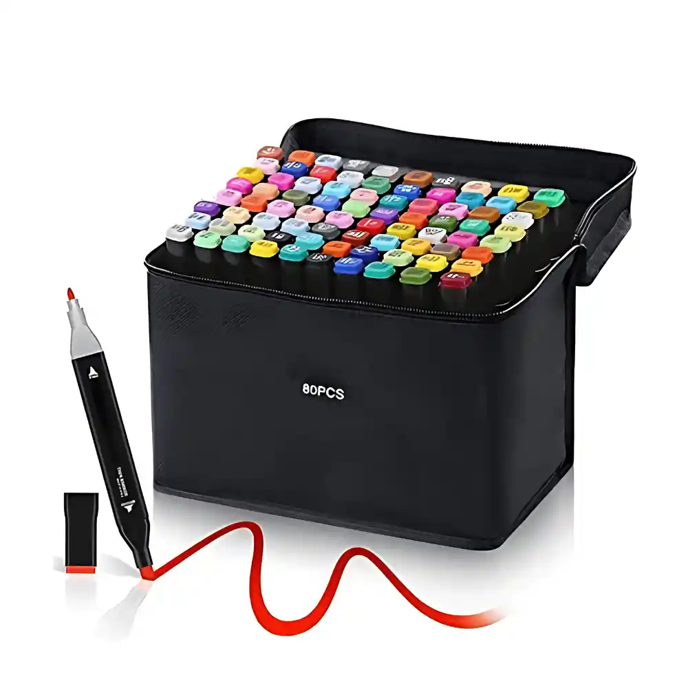 ¡Libere la creatividad sin límites con nuestro Estuche de Marcadores de Doble Punta de 80 Piezas! Este set profesional es el sueño de todo artista, ilustrador, estudiante o entusiasta del diseño, ofreciendo una paleta de colores vibrantes y la versatilidad que necesita para dar vida a sus ideas. Colores Vivos y Versatilidad Artística: Amplia Gama de 80 Tonos Únicos: Sumérjase en un mundo de color con una impresionante selección de 80 marcadores. Desde los tonos más sutiles hasta los más intensos, tendrá la gama perfecta para cualquier proyecto artístico o de diseño. Doble Punta para Máxima Precisión y Relleno: Cada marcador cuenta con dos puntas especializadas. Una punta fina para detalles intrincados, líneas precisas y escritura, y una punta biselada ancha para un llenado rápido de grandes áreas y trazos audaces. Colores Permanentes y de Secado Rápido: Disfrute de resultados duraderos y sin manchas. La tinta de secado rápido asegura que sus obras de arte no se manchen y los colores se mantengan vibrantes con el paso del tiempo. Diseño Inteligente y Portabilidad: Estuche de Almacenamiento Compacto: El set viene en un elegante estuche negro, diseñado para mantener sus marcadores organizados y protegidos. Su diseño compacto facilita el transporte, permitiéndole llevar su estudio de arte a cualquier lugar. Tapas Codificadas por Color: Cada marcador tiene su tapa codificada por color, permitiéndole identificar rápidamente el tono exacto que necesita sin interrupciones en su flujo creativo. Beneficios que Inspiran la Creatividad: Ideal para Todas las Edades y Habilidades: Perfecto para artistas profesionales, estudiantes de arte, diseñadores gráficos o simplemente para aquellos que disfrutan coloreando y creando. Resultados de Calidad Profesional: Logre transiciones de color suaves, capas ricas y efectos impresionantes gracias a la calidad superior de nuestros marcadores. Un Regalo Inolvidable: Sorprenda a cualquier amante del arte con este completo set que seguramente encenderá su pasión y creatividad. ¡Desbloquee un universo de posibilidades creativas con nuestro Estuche de Marcadores de Doble Punta de 80 Piezas! Es más que un set de marcadores, es la herramienta que lo ayudará a transformar su imaginación en arte. ¡Adquiéralo hoy mismo y comience a crear!