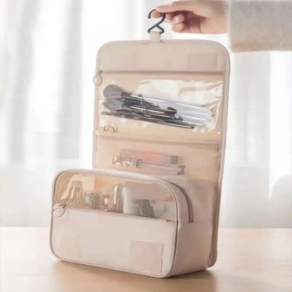 Este organizador de maquillaje se puede colgar para facilitar el acceso. El gancho adjunto permite colgar la bolsa en la puerta del baño, la barra de la ducha o el toallero para un acceso rápido a tus artículos de tocador, así como para guardar tu estuche de viaje cuando no sea necesario. Es ideal para llevar tus artículos de tocador, cosméticos, accesorios de viaje y tus artículos personales, ayudándote a ahorrar espacio. Cuenta con múltiples compartimentos para diferentes solicitudes de almacenamiento y cremalleras resistentes y duraderas. La bolsa mantendrá tus accesorios de baño seguros, es fácil acceder a ellos, más rápido y más conveniente; se pliega para un fácil almacenamiento y viaje. Dimensiones: 24cm x 9cm x 18cm