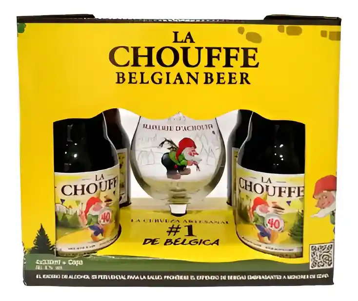 America Store te trae Pack Cerveza Importada Belga La Chouffe El Estuche Contiene -4 Cervezas de Belgica La Chouffe de 330ml -1 Copa Cervecera La Chouffe Original - Tipo de cerveza Ale - Capacidad 330ml - Volumen de Alcohol 8% - Temperatura recomendada de Consumo 6 ºC LA CHOUFFE revela en boca notas de cítricos, seguidas de un toque refrescante, gratamente especiado, que le confiere una gran ligereza. Esta cerveza dorada, con un ligero sabor a lúpulo, fue la primera en salir de las bodegas de la cervecería Brasserie d’Achouffe, hace 40 años. ¡Desde entonces, sus sabores únicos, galardonados por varios premios, han conquistado a los amantes de la cerveza en el mundo entero! El exceso de alcohol es perjudicial para la salud. Ley 30 de 1986. Prohíbase el expendió de bebidas embriagantes a menores de edad. Ley 124 de 1994.