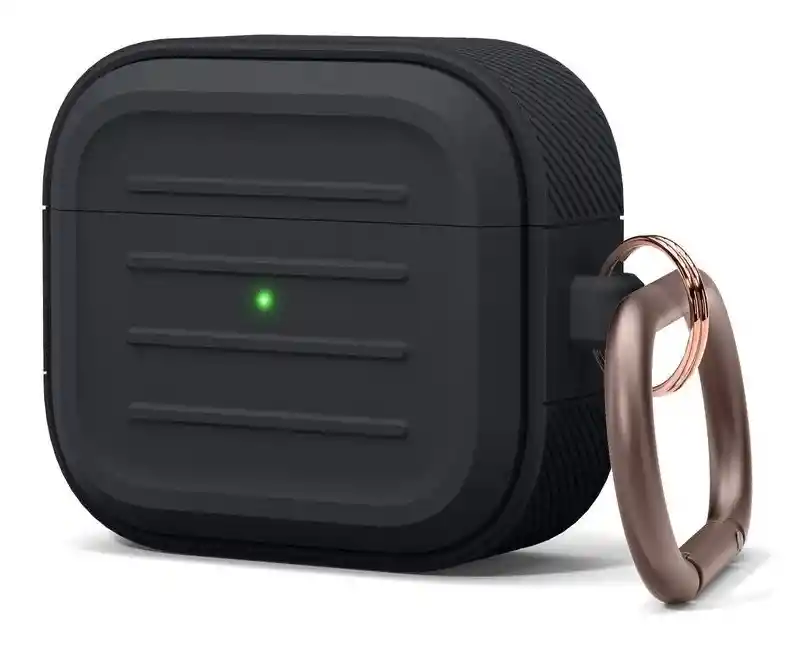 Estuche para AirPods 3 contra caídas Armor Elago disponible en Negro, todos nuestros estuches están diseñados en casa desde cero. Desde un concepto, hasta un producto terminado, todos los aspectos de la creación de un producto se realizan internamente para garantizar que obtenga un estuche que se adapte perfectamente, ayude a protegerse de las gotas y se vea excelente Características: - El diseño de armadura sólida ayudara a proteger su estuche de carga al brindar una increíble protección contra caídas proteja su dispositivo sin granel y tenga acceso a todas las funciones de su estuche de carga, como la carga inalámbrica. - El material de TPU premium protege su estuche de carga del uso diario, incluidos suciedad, aceite, rasguños, y gotas, polvo. Se incluye mosquetón para que puedas colgar el estuche de tu mochila, bolso, pantalones, etc. Audifonos