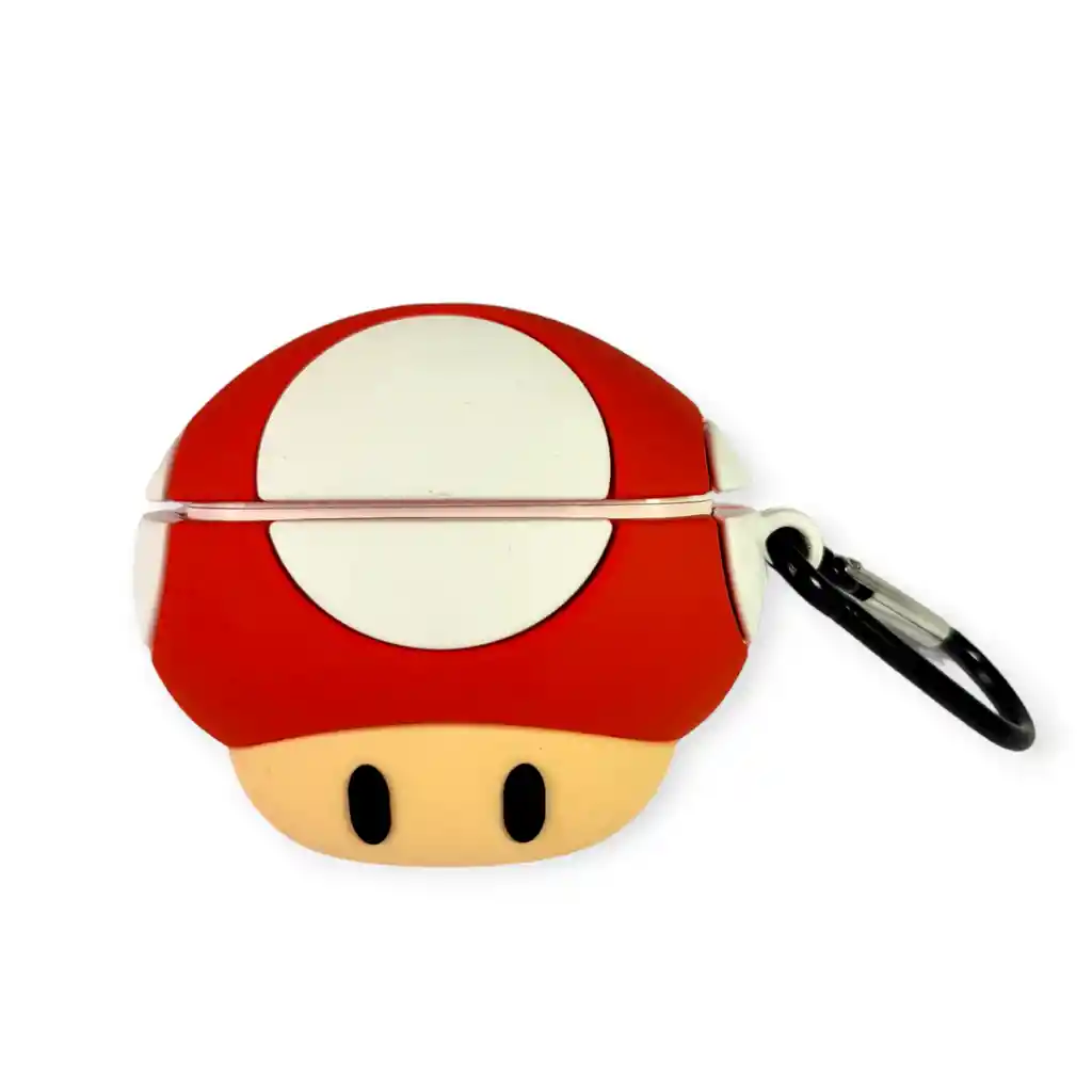 Silicone Case para AirPods Pro Diseño Champiñón Super Mario Incluye 3 piezas: estuche, tapa superior y gancho. Incluye hebilla para que lo cuelgues y lo lleves más fácil en tu morral, bolso, etc. Fotos de referencia, no incluye audífonos. Producto 100% garantizado. Somos Andicell Soluciones.